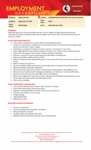 | Employer: | JUSTICE OFFICE | Position: | ADMINISTRATIVE ASSISTANT (Permanent Position) | |
