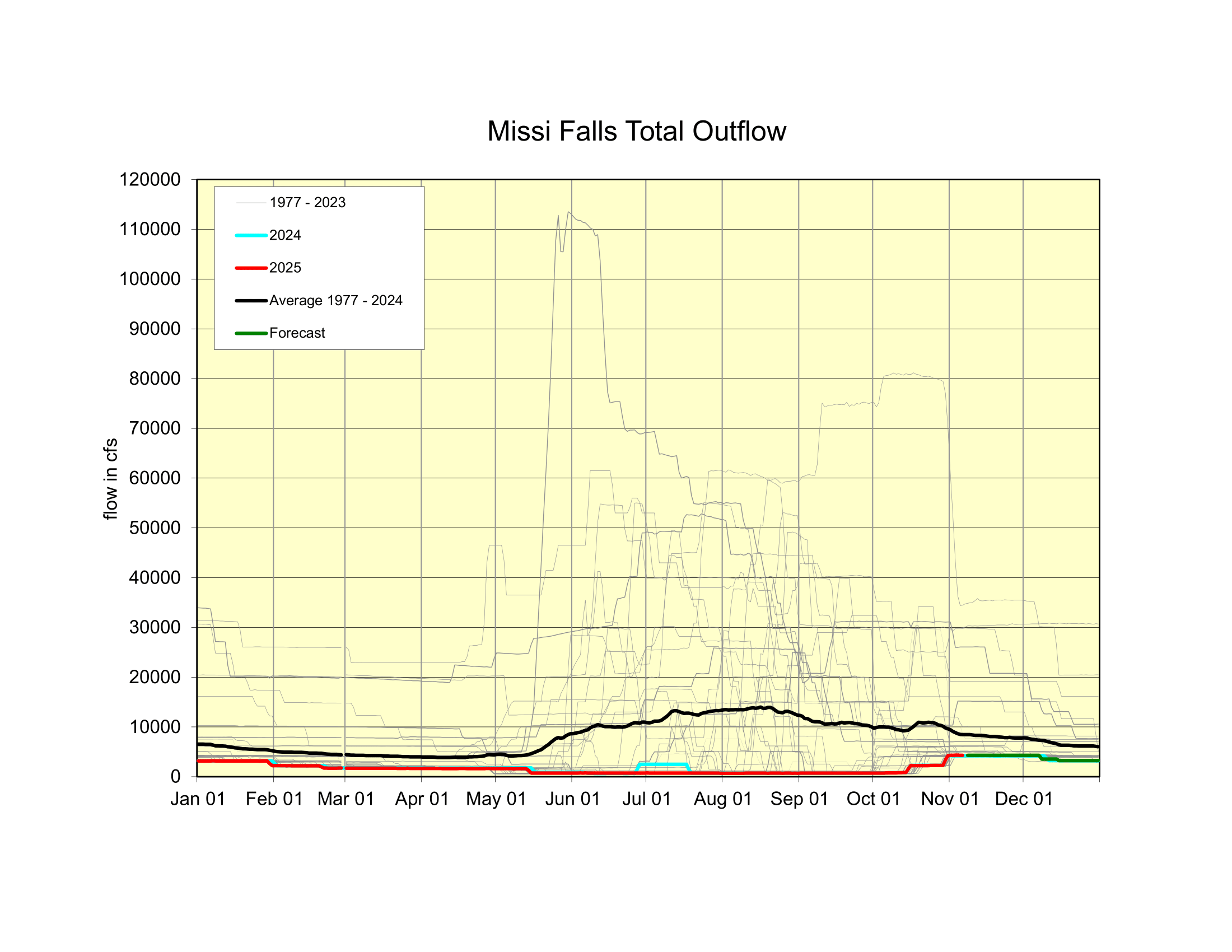 Missi Outflow: Holding steady at 4,250 cfs, as required by licence.